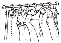 “That’s a fabulous dress!” cried Jessie, as she spotted a cream crinoline gown decorated with tiny pink rosebuds and layers of pretty lace.