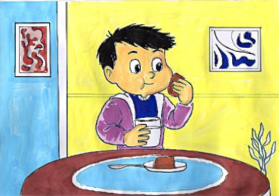 Когда Витя вернулся из ванной, мама поставила на стол стакан молока и шоколадное пирожное.