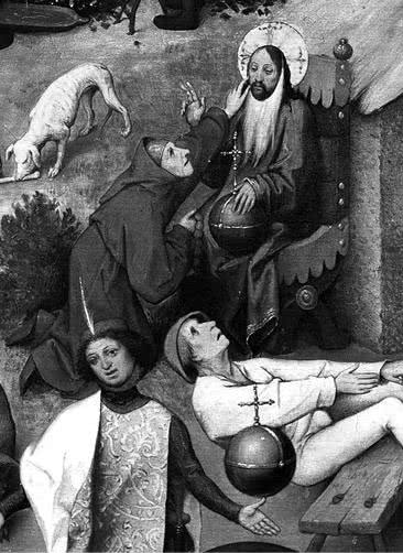 Да и само учение Церкви, конечно, не было ни монолитным, ни неизменным. Доктрины менялись со временем, богословы спорили о природе таинства евхаристии, о непорочном зачатии Девы Марии, о том, можно ли представлять Бога-Отца в антропоморфном обличье, да и вообще подобает ли изображать Троицу. Монахи и белое духовенство, традиционное монашество и нищенствующие ордена, папы и радикальные францисканцы, призывавшие Церковь и клириков к бедности, отличались друг от друга по стилю религиозной жизни, полемизировали, соперничали, а иногда и враждовали друг с другом. И эти противоречия тоже получали выход в иконографию – например, когда францисканцы, попавшие под удар со стороны Рима, изображали понтификов как предтеч Антихриста.