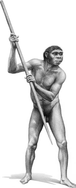 Вопрос о том, были ли древние люди падальщиками или также охотились, решился, когда ученые нашли ясное свидетельство охоты – лопатку лошади, пронзенную копьем. В 1997 году нашлось и яркое тому подтверждение, когда на стоянке Шенинген в Германии ученые обнаружили реальные образцы таких копий возрастом около 340 тысяч лет, некоторые из них так и застряли в остатках лошадей. В конце этой главы мы обсудим практику охоты из засады на коротких дистанциях, применявшуюся европейскими гейдельбергцами, и задумаемся, могло ли это стать решающим фактором в эволюционном расхождении между неандертальцами и современными людьми.