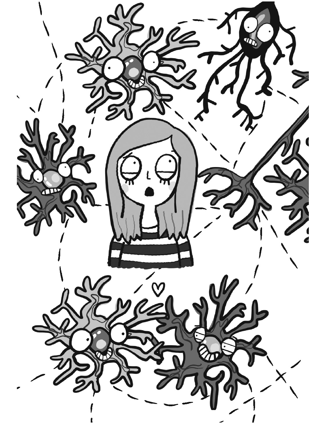 И хотя в твоем мозге есть и другие типы клеток, обычно, говоря о «клетках мозга», подразумевают нейроны. Они (представь, что скрестили дерево и паука – примерно так выглядит нейрон) соединяются друг с другом и передают сигналы туда-обратно. Так мозг и работает.