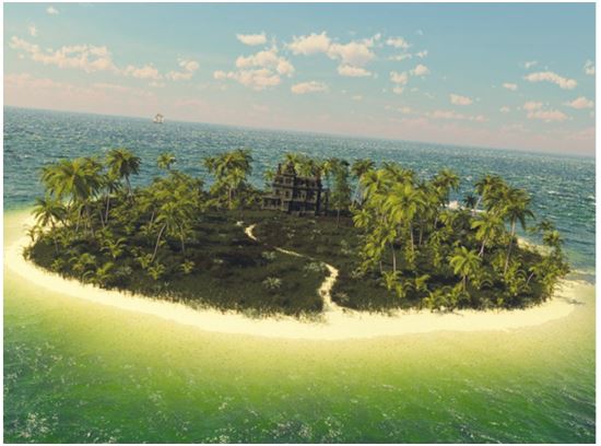 Остров окружала прозрачная чистая вода.