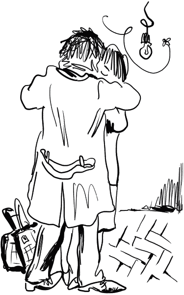 Она встала, медленно и как-то бесцельно стала кружить по кухне, заглянула в комнату… Потом села на табурет и застыла так, уронив руки, погруженая в свои мысли… Сидела она спиной к окну, и не видела, как в окне появились подрагивающие старческие ноги в сопровождении палочки. Старичок наклонился, долго смотрел в комнату, на Любину спину, и наконец, в дверь постучали. Люба поднялась и открыла.