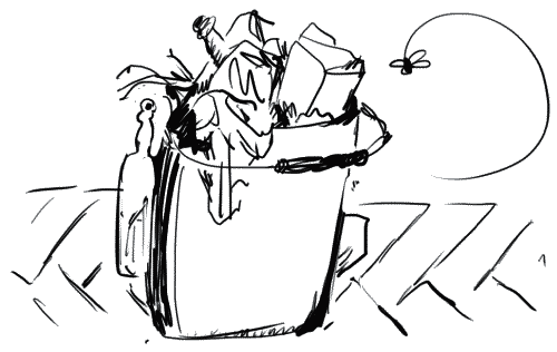 Выходят, проходят мимо окна. Тихо… Только в углу над мусорным баком жужжит муха Тамара…