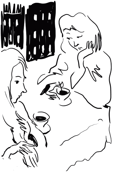 ЛЮБА. Спасибо… Я в самом деле не могу есть. Это пройдет. Дня через три… Я вот, чай только хлебну, горячий…