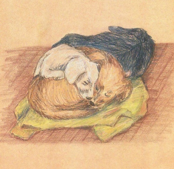 Утром старушка проснулась от тяжести в ногах и странного храпа. Возле нее и на ней спали две собаки.