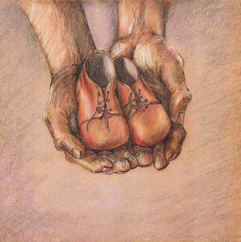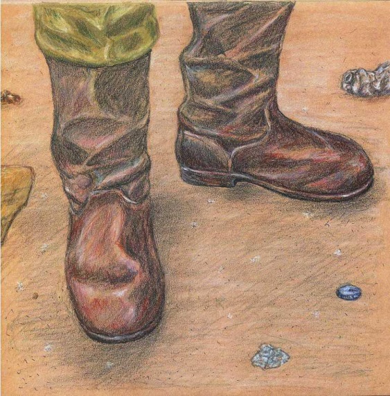 – Ха, нашла! Ишь, думали не найду! А я нашла! – радовалась бабка. В руках она держала пару потертых детских ботиночек – видимо были красные – пробормотала себе под нос старушка и протянула их мальчику: