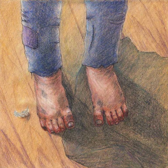 Малыш сделал как она сказала. Рукавом своей кофты он вытер сопли и перестал хныкать. Старуха отломила еще кусочек пряника, сунула себе в рот и молча, рассасывая пряник, смотрела на мальчика. На малыше была одета потрепанная теплая кофта, ему по колено, из под нее торчали худенькие босые ножки в легких штанишках. Увидев покрасневшие от холода пальчики на ногах малыша, старушку словно стукнуло током, она подскочила и начала рыться в куче хлама, раскидывая все в разные стороны.