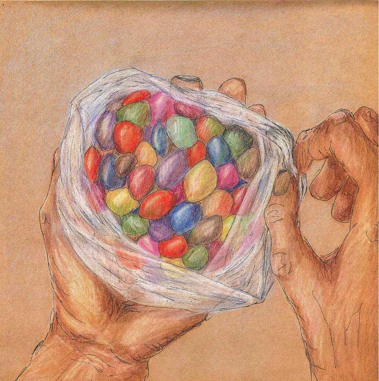 – Ну ка ложи в рот – она достала несколько слипшихся карамелек и сунула их в рот мальчику.