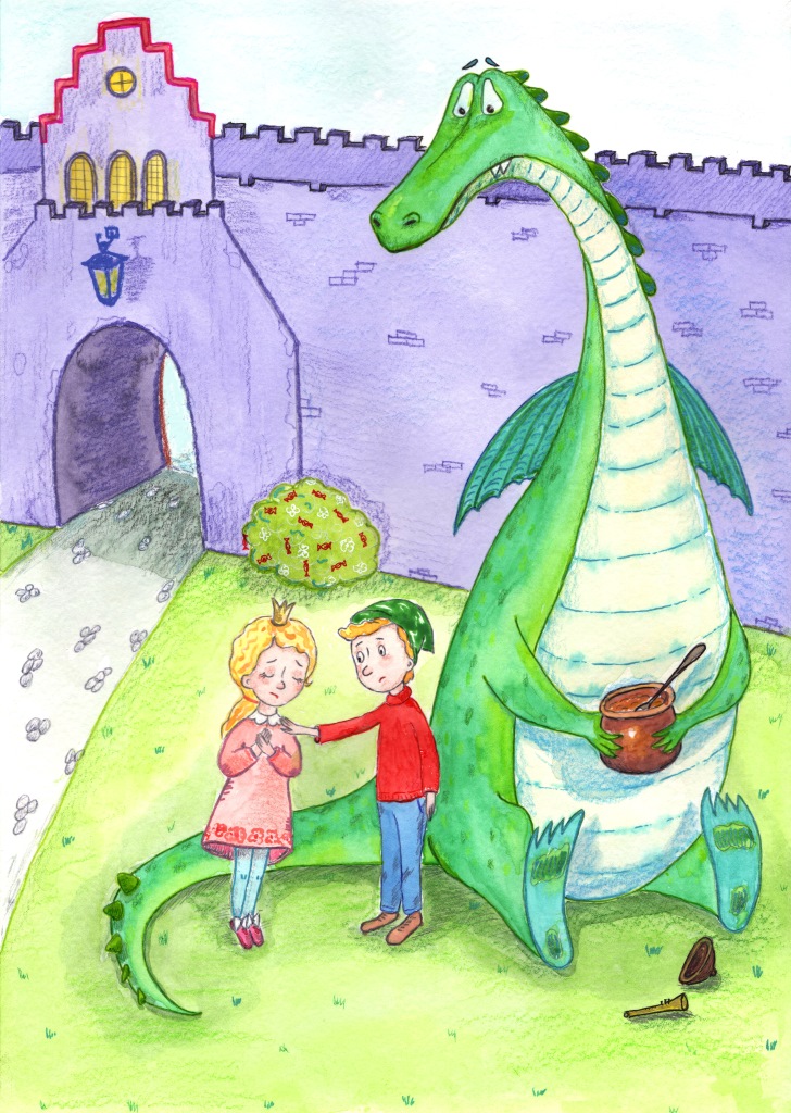 Прибежав на место, мальчик достал горшочек и накормил Даки волшебной кашей. Дракончик сразу же выздоровел!