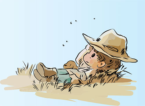 Приключения, авантюры и всё тайное были его стихией. Без чего его глаза потеряли бы свет. Он любил и заботился обо всём живом, и любовь эта была взаимной. Всегда был окружён тёплой компанией. Иногда это была даже семейка комаров, провожающих его от озера до дома и весело напевающих писклявые песенки.
