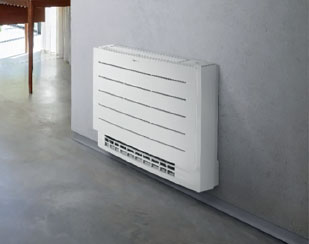 Этот вариант подходит, если отсутствует возможность разместить кондиционер на стене рядом с потолком, а также если нет запотолочного пространства. В этом случае кондиционер можно повесить на стену, близко к полу, либо на потолок. Имеют высоту 18–30 сантиметров.