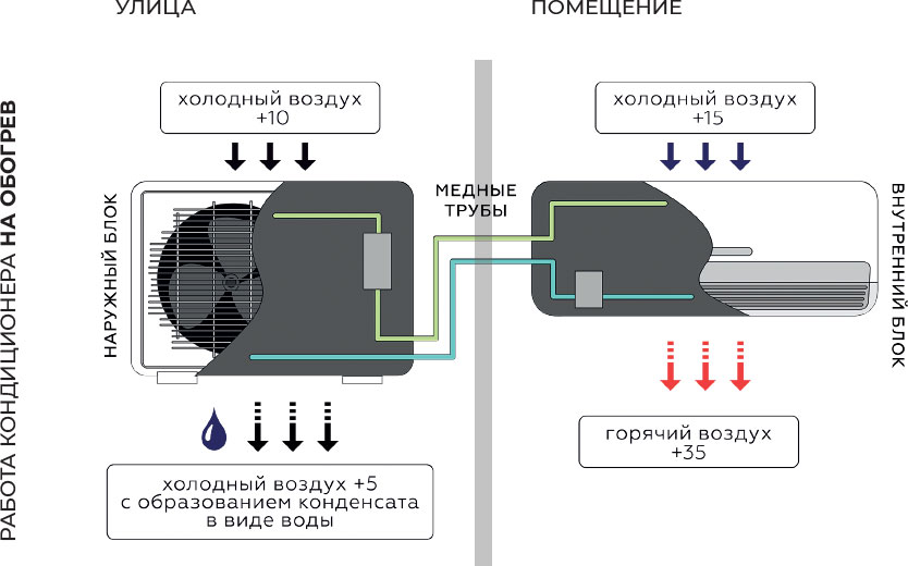 Вода образуется в уличном блоке, если кондиционер работает на обогрев помещения
