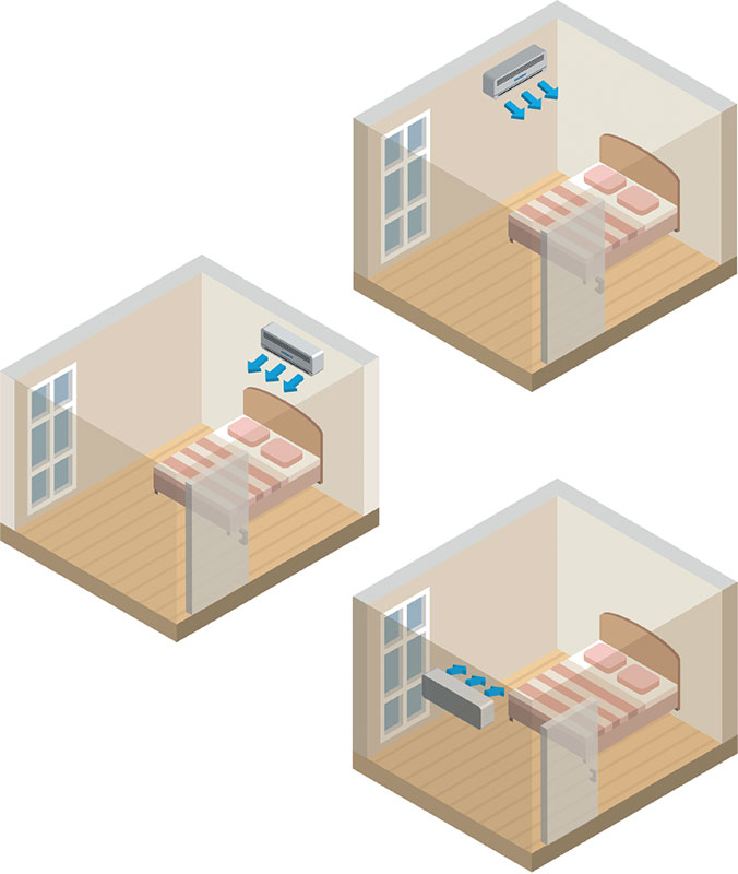 НЕОПТИМАЛЬНОЕ расположение кондиционера: воздух попадает на кровать