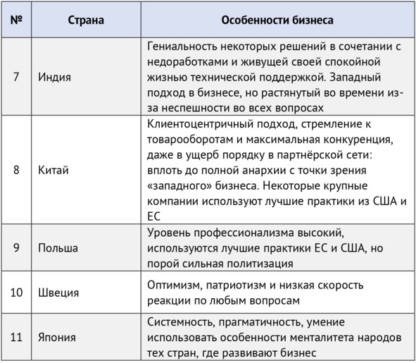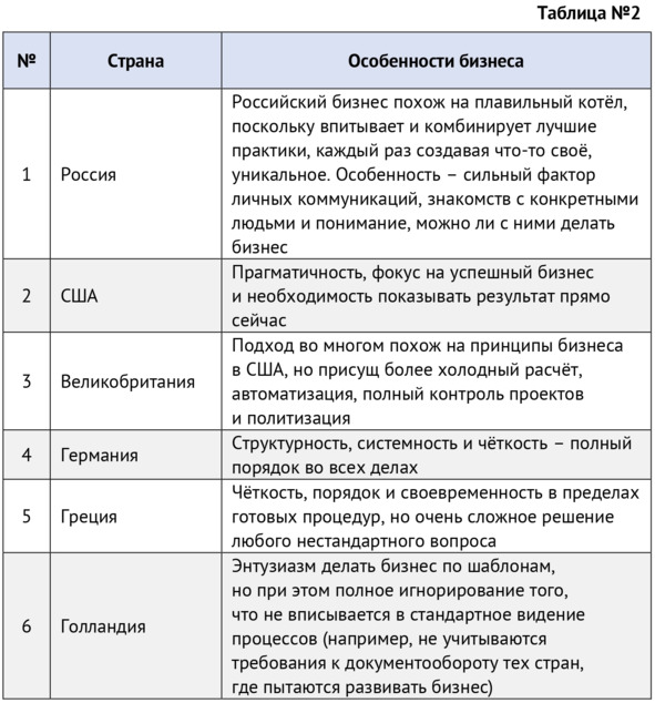 Мне довелось поработать с вендорами и дистрибьюторами в разных странах, поэтому позволю себе сделать субъективную оценку того, какие особенности ярко выражены в некоторых регионах (см. таблицу №2).