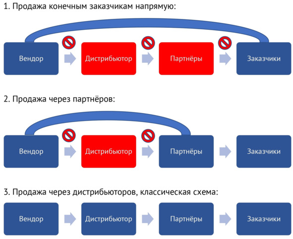 Для производителей решений в сфере ИТ существует три основные схемы продаж: