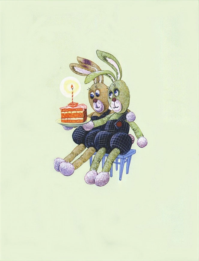 Late in the evening, when Masha was already asleep, the plush bunnies Sineus and Truvor[1] were celebrating their first birthday in a box under her bed. The bunnies were twins, and if it were not for a spot of watercolour on Sineus’ ear and black threads sewn on Truvor’s tail, it would not be possible to tell them apart.