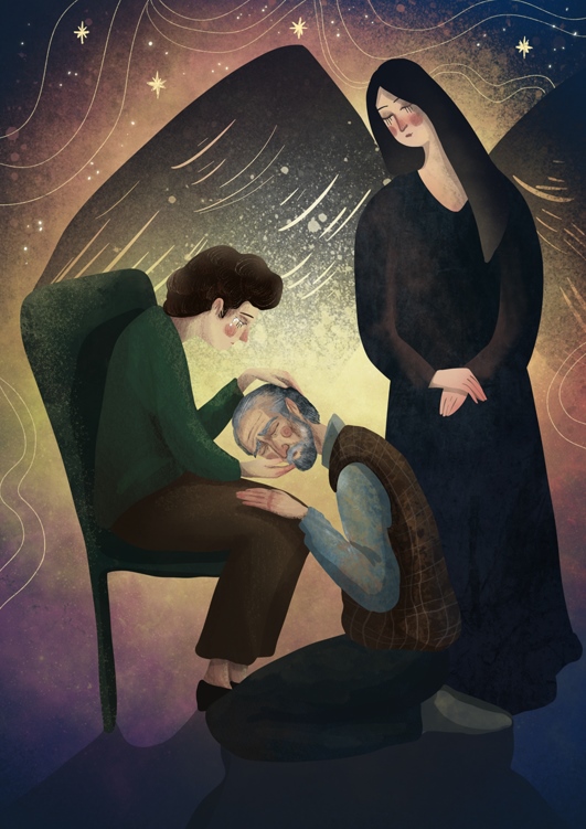 Наконец они одновременно выдохнули. Как будто все это время удерживали дыхание. Мама принялась утирать слезы, дед положил седую голову маме на колени.