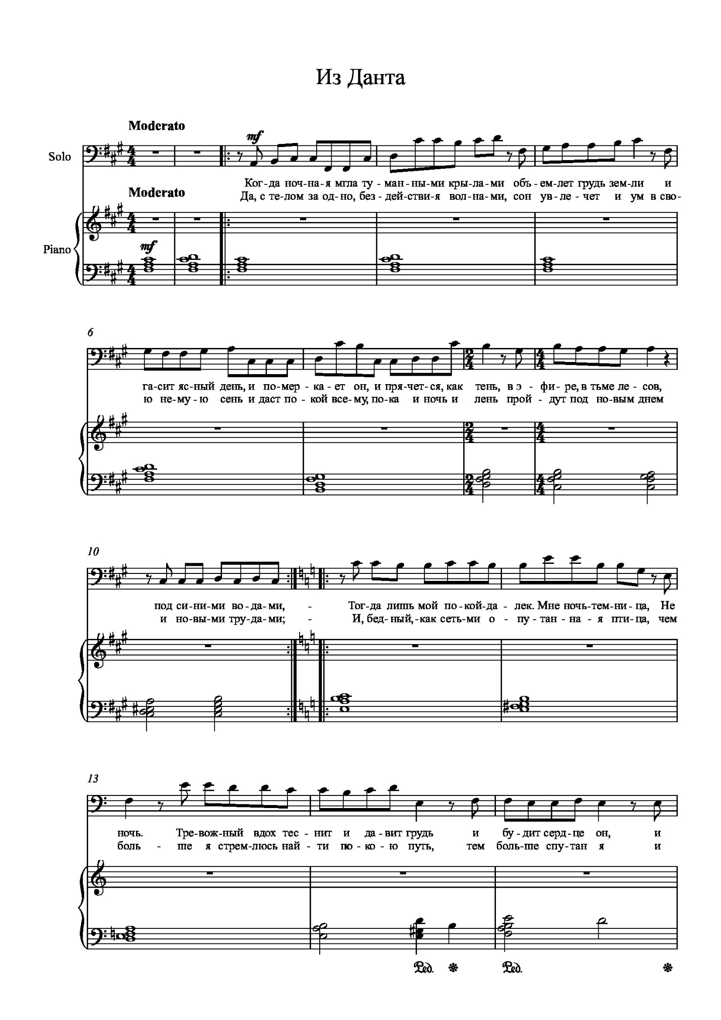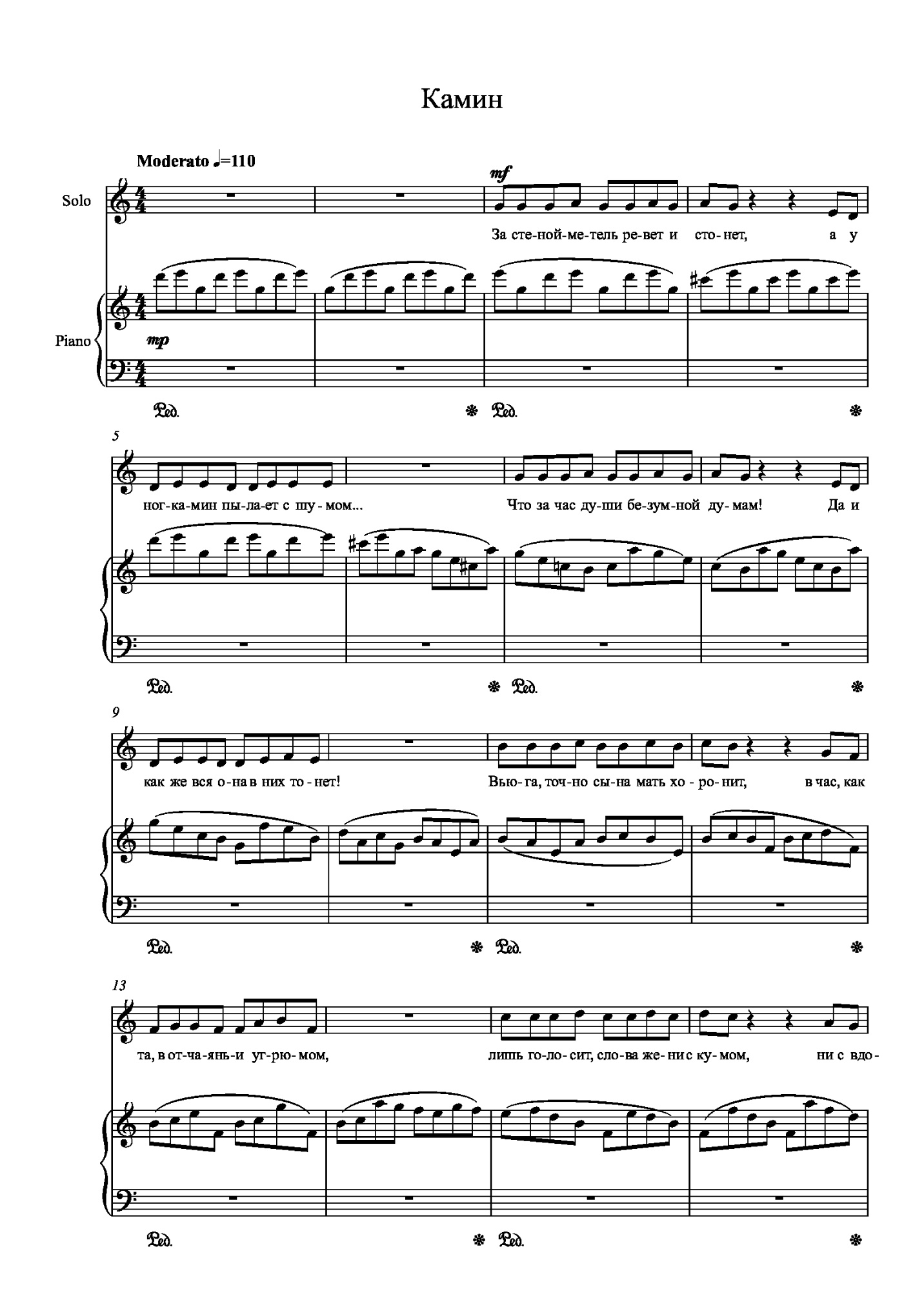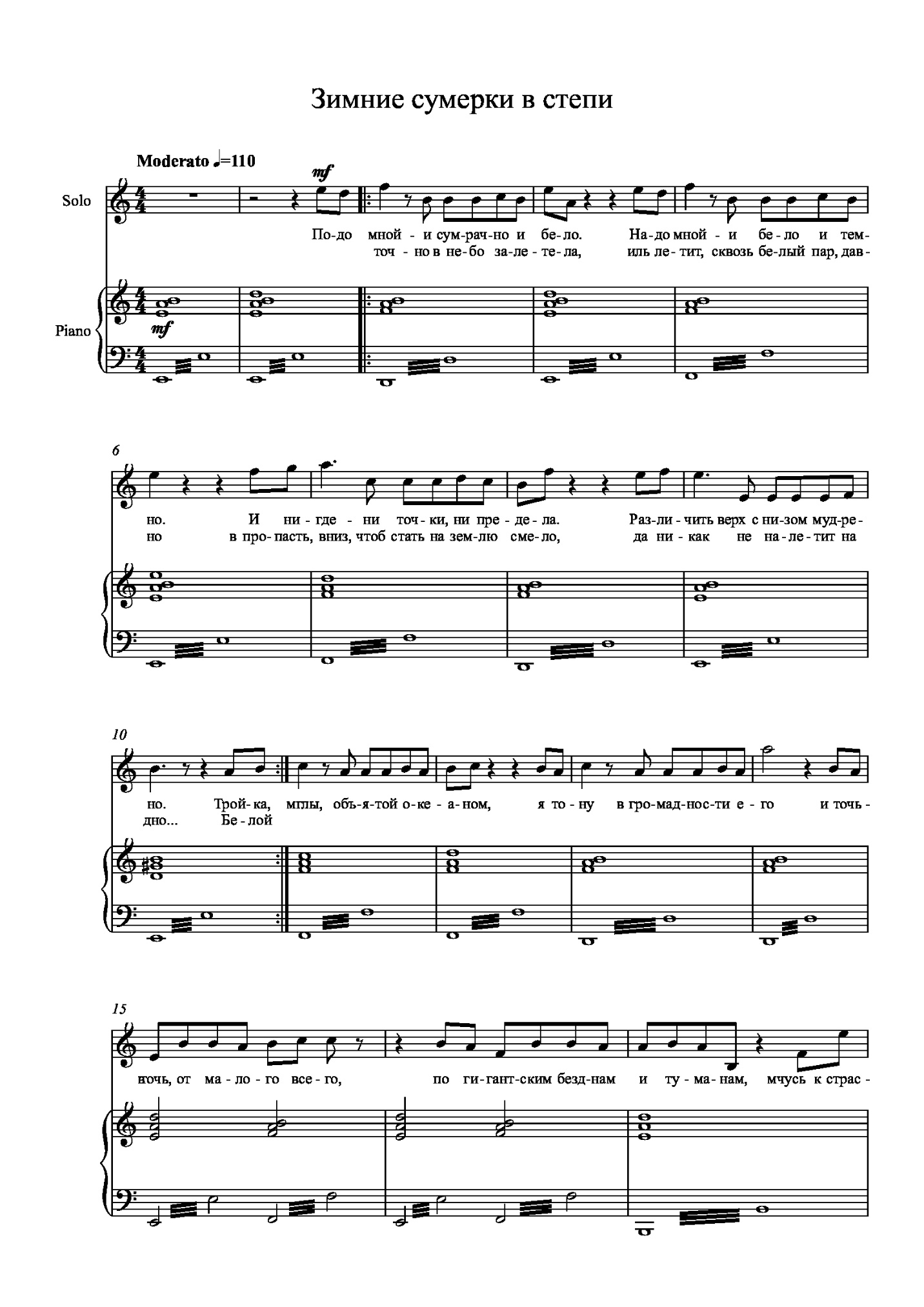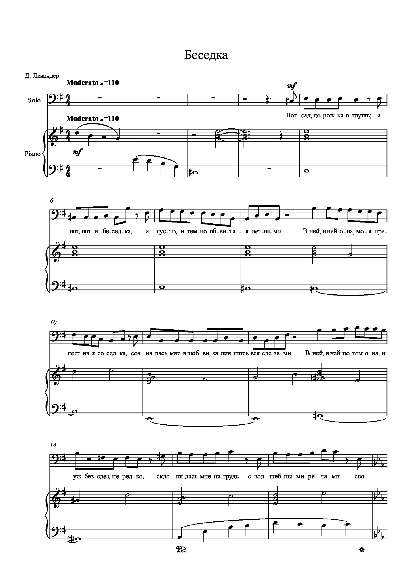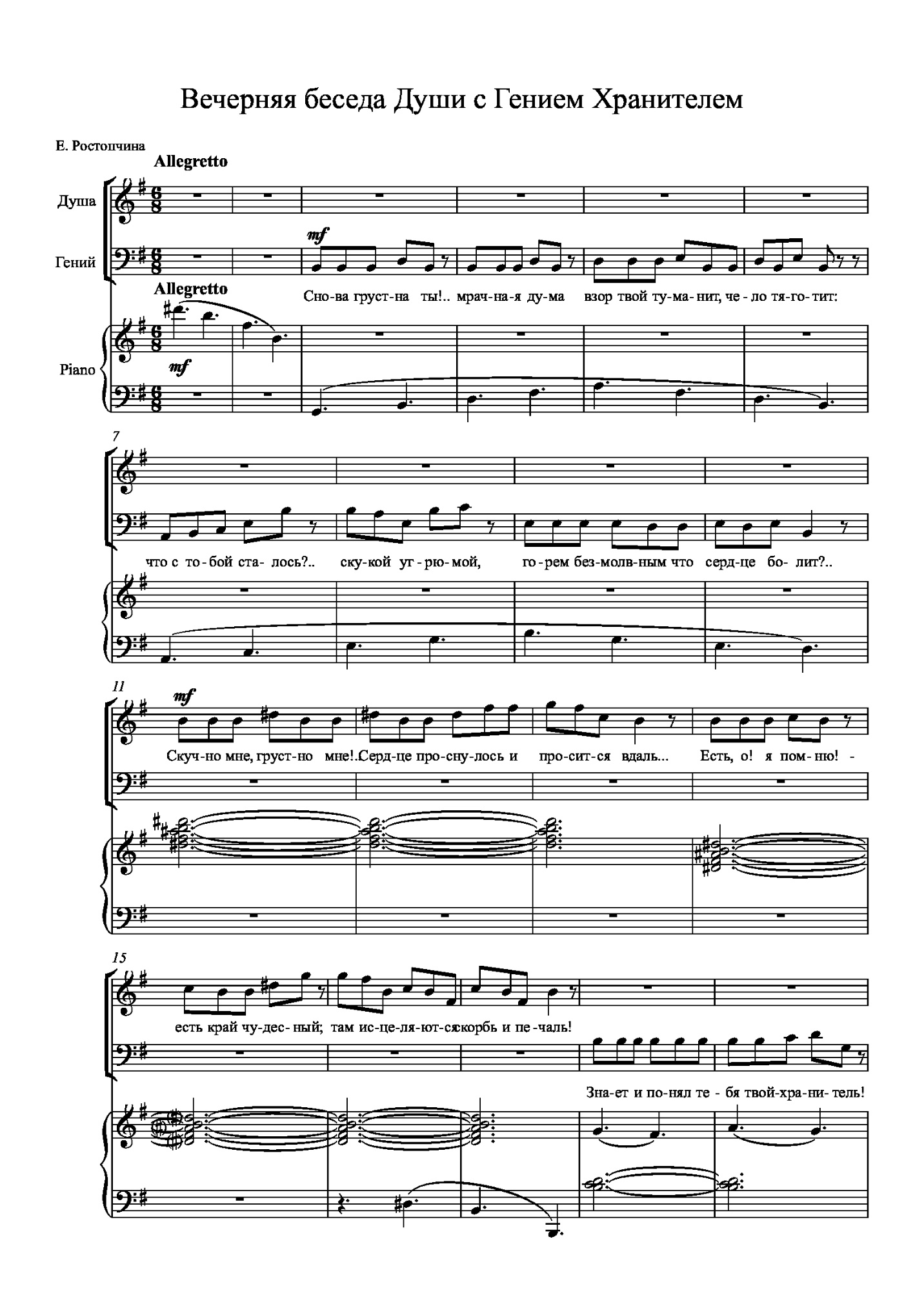Вокальный цикл 'Русская поэзия' на стихи поэтов Д. Лизандера и Е. Ростопчиной для сопрано и баритона в сопровождении фортепиано