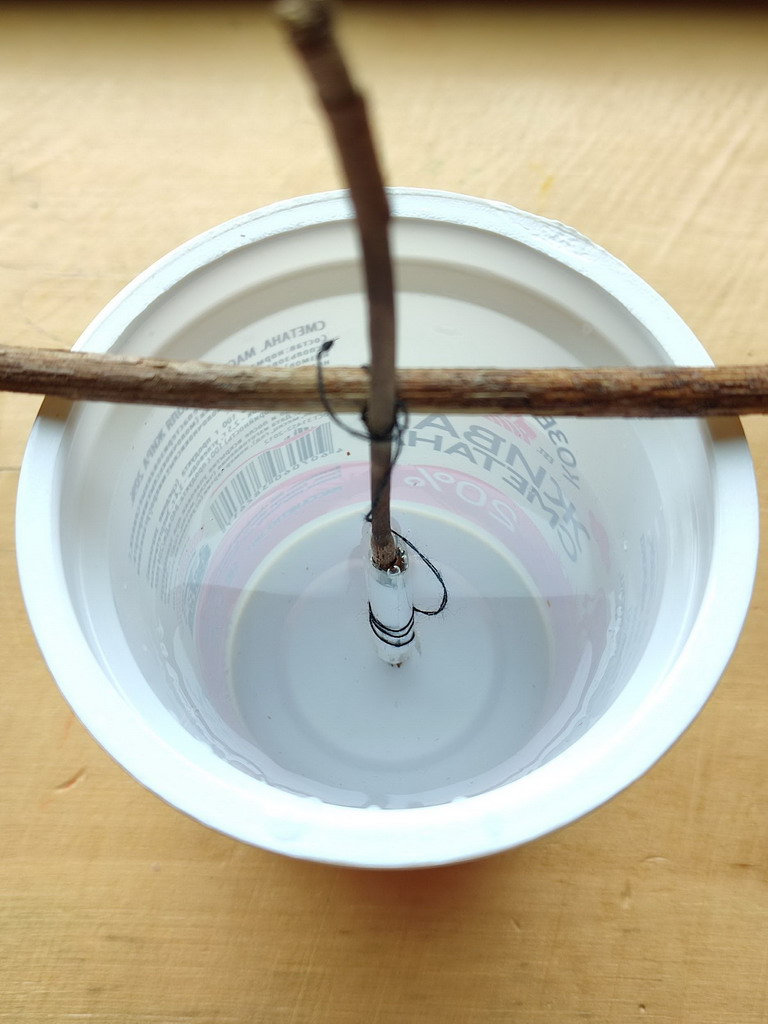 Один вариант (на фото ниже) – с помощью двух палочек. На одну из них наматываем записку на нужной высоте. Вторую палку потолще закрепляем поперёк для вертикальности.