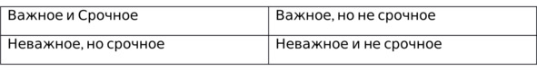 Матрица Эйзенхауэра представляет собой квадрат, разделенный на четыре секции: