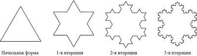 Платон в диалоге Сократа с Тимеем рассуждает о сотворении самоподобной Вселенной и всех мыслящих существ, где «подобное» он представлял «более прекрасным, чем неподобное». Подтверждение эта позиция получила с появлением ряда выдающихся математиков конца XIX и начала XX веков, таких как Вейерштрасс, Пуанкаре, Кантор, Менгер, Серпинский, Минковский, поставивших под сомнение универсальность законов евклидовой геометрии. Так же, как и законы Аристотеля, геометрия Евклида ограничена строгой формой и имеет дело с правильными «гладкими» объектами: шар, цилиндр, пирамида и т. д. Для традиционной науки «шероховатые» изрезанные поверхности объектов и сами неправильные неевклидовы объекты представляли головную боль такого же порядка, как в свое время для Ньютона проблема вычисления орбиты Луны. Затаив дыхание в предвкушении неприятных новостей, они наблюдали, как на горизонте новой науки «появились ужасные вещи – кривая Вейерштрасса, пыль Кантора, ковер Серпинского и губка Менгера. Эти изобретения необычных и неанализируемых структур были восприняты математическим сообществом со страхом, и считалось, что лучше всего поместить их в «Галерею Чудовищ». Общее отношение математиков к подобным фигурам более чем ярко отражено фразой Шарля Эрмита в 1893 году: «Отвернуться в страхе и ужасе от этой прискорбной чумы функций без производных» [5, С. 126]. В 1904 году шведский математик Нильс Фабиан Хельге фон Кох построил одно из своих «чудищ», известное как снежинка «Коха», и привел в качестве примера замкнутую кривую бесконечной длины, которая нигде не имеет касательной и пересечений, нигде не дифференцируема и не спрямляема (см. рис. 3.1).
