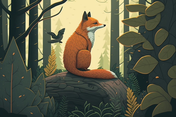 Жили-были два друга: маленькая птичка и лиса, которым нравилось исследовать новые места. Они решили отправиться в приключение по лесу и раскрыть его неизведанные тайны.