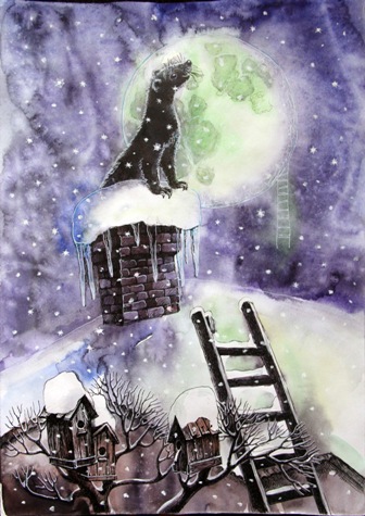 А ночь уже вот-вот грозила превратиться в рассвет. Снега вокруг – великое множество! Нигде нельзя было увидеть землю, восхитительную землю с её бесконечными букашками и тихой музыкой травы. Зато были ёлки, тихо и печально стояли они вокруг, будто веретена, с которых раскручивались прозрачные нити ночи. Зверёк покатался немного на хвосте по крыше, а потом свалился в сугроб и выбрался только потому, что когда-то папа учил его плавать. Не удивляйтесь: для такого маленького зверька, как наш, сугробы – как застывшие волны.