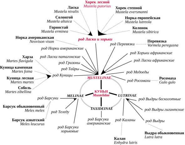 Подробная система куньих приведена на рис. 3.