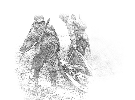 Михаила Тимченко положили на плащ-палатку и пошли дальше.
