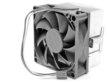 Видеокарту я разогнал тоже, для этого уже использовался специальный софт. Но была проблема – видеокарта сильно грелась. На GPU стоял обычный алюминиевый радиатор без вентилятора. Решение напрашивалось само собой. Отломав штатный радиатор, я приклеил обычным суперклеем на графическое ядро кулер от процессора и воткнул его в свободный разъем для кулера на материнской плате.