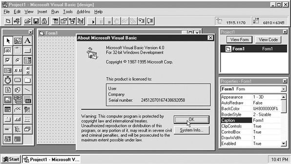 После Pascal я взялся за язык программирования Visual Basic. Мой брат купил книжку по Visual Basic 6.0. Подкупало тем, что на нём можно было визуально рисовать окна и элементы на них. И очень просто обрабатывать события: щелчки мышкой, ввод с клавиатуры и т. д. Щелкаете по любому элементу, в открывшемся окне выбираете событие, пишете его обработчик.