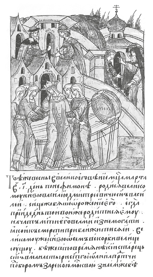 Вскоре после рождения старшего сына казалось, что все проблемы в семье великого князя остались позади – 15 января 1397 года на свет появился второй сын Иван[55]. Зимой 1398 г., когда старшему сыну Василия I исполнилось три года, Софья Витовтовна повезла его в Смоленск к отцу. По этому поводу московский летописец записал: «Тое же зимы княгини великаа Софья Васильева Дмитреевича ездила во Смоленскъ къ отцу своему, к великому князю Витовту, и къ матери своеи, и с детми своими и с бояры многыми, и пребысть тамо две недели, и отпущена бысть с честью и съ многыми дары, и принесе оттуду многы иконы, обложеныя златоми сребром, еще же и часть святых страстеи спасовых, иже давно принесены были въ Смоленескъ от Царягорода»[56].