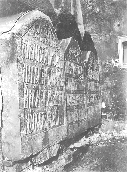 Фотография 1905 г. торцов надгробий в Архангельском соборе московского Кремля.