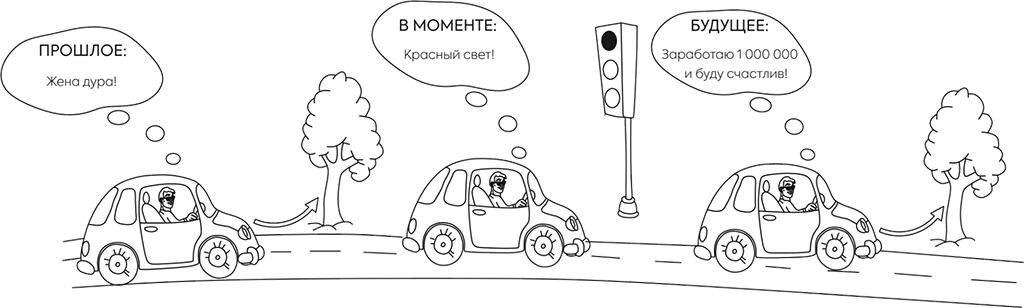 Как думаете, что поможет нашим водителям вернуться в настоящий момент? Конечно же, боль. Итак, оба испытывали психическую боль, оба не наслаждались жизнью. Один был в гневе, другой – в страхе. И вдруг одного из них подрезали. Что у нас обычно принято в таких ситуациях делать? Ну, как минимум, обругать того, кто подрезал. Водитель уже был в гневе, а тут еще и подрезают. Ух, гнев так и хлещет! Далее наш герой приходит на работу и жалуется коллегам, что жена – дура, а по улицам ездят криворукие тупицы. Он продолжает накручивать себя и зацикливаться на ситуации. Друзья-коллеги, желая поддержать, подливают масла в огонь.