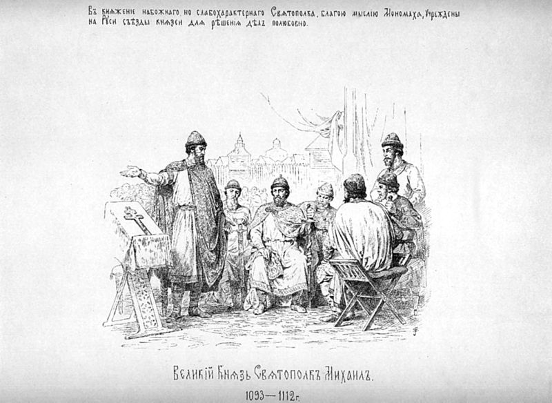 После Всеволода вступил на киевский престол сын Изяславов Святополк (1093 г.), а не Всеволода Мономах, который сказал при этом следующие примечательные слова: «Аще аз сяду на стол отца своего, то имам рать с Святополком взяти, яко то есть стол преже отца его был»5.