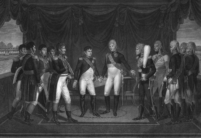Достопамятное свидание между императором Александром и Бонапарте, на плоту среди реки Неман воспоследовавшее, дало новое направление политике и переменило положение Европы, а последствием оного был мирный трактат, в Тильзите подписанный.