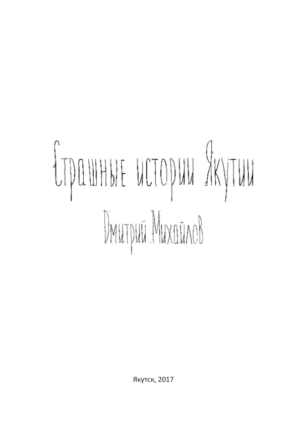 Ребята! Сам я никогда не любил читать предисловий, поэтому буду краток. Проект этот зародился в сети 1 мая 2014 года. Я тогда сидел в интернете и понял, что в Якутии очень много страшных историй, но никто их не пытался собрать воедино. Я тогда решил сделать свою базу данных, которая со временем начала расти и увеличиваться. Какие-то истории я нашел в сети, какие-то мне отправляли читатели, некоторые записывал лично с чужих слов.