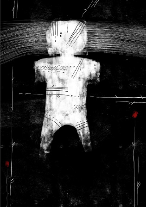 Он, взяв соседа с собой, прибежал к себе, но никого не обнаружил. Однако, слышался тихий плач. Включив карманный фонарик, он мельком увидел силуэт на моем дворе, будто кто-то сидит спиной на корточках, обхватив колени руками и покачивается.