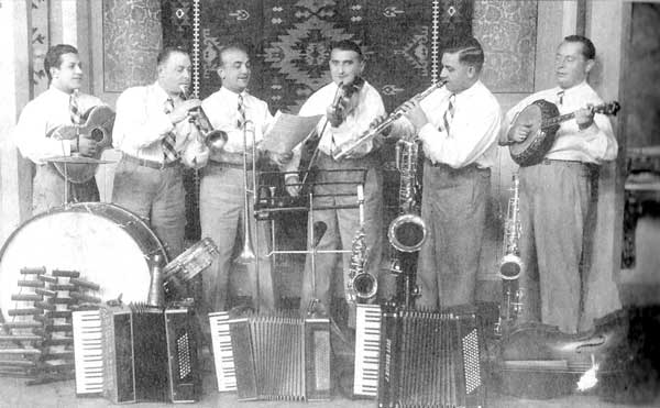 Ансамбль Е. Петерсбурского (третий слева). В центре – Г. Гольд. Варшава, 1930-е