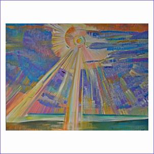 Работы из серии «Симфония Солнца», возникшую в результате наблюдения за Солнцем, как объектом духовного и философского исследования, и мир рассматривается именно с позиций архетипических обобщений, здесь также, несомненно, в открытом перечислении того, что воплощалось Творцом, когда «Дух носился над землею».