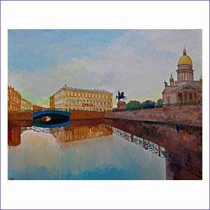 Серию работ, выполненных в технике масляной живописи и в технике пастели. Работы посвящены теме сопоставления двух городов – столиц культурной и светской жизни России и Европы. Образы, сложившиеся в результате наблюдения этих городов на протяжении нескольких лет, позволили выделить мне некоторые темы, перекликающиеся и являющиеся характерными чертами портретов двух столиц. Это тема домов крыш, парков, каналов и мостов…