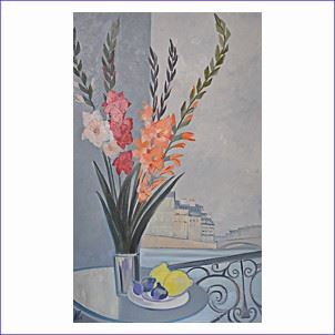 Гладиолусы и Париж. Холст/масло, 116x73, 2015 Серия работ «Серый Париж».