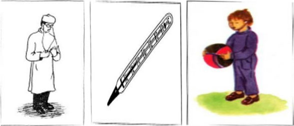 На первом этапе больной объединяет в группу врача, ребенка и термометр, объясняя это тем, что врач лечит ребенка на основании температуры, указанной на термометре.[3]