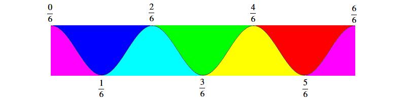 Рассмотрим для начала Малый Порядок Эманаций. Он представлен шестью цветами, но также его можно выразить через соотношения периодов. В этом случае каждый пик эманации соответствует двум в степени от нуля до шести, делённой на шесть, то есть первый пурпурный пик будет равен одному, а второй пурпурный пик – двум. Позднее я обнаружил, что музыканты это уже изобрели, только с основанием степени в двенадцать и для частоты, и называется это Равномерно темперированным строем. Тогда зачем ноты нужны совсем не понятно, они нам не понадобятся.