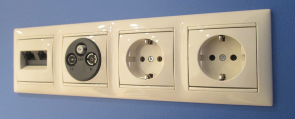 Сетевая, телевизионная и две электрических розетки в одной рамке