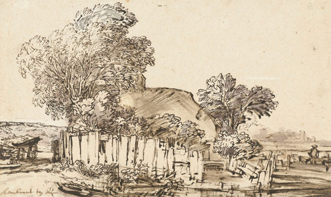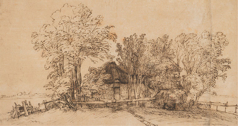 Рембрандт. Коттедж среди деревьев, ок. 1650 г.