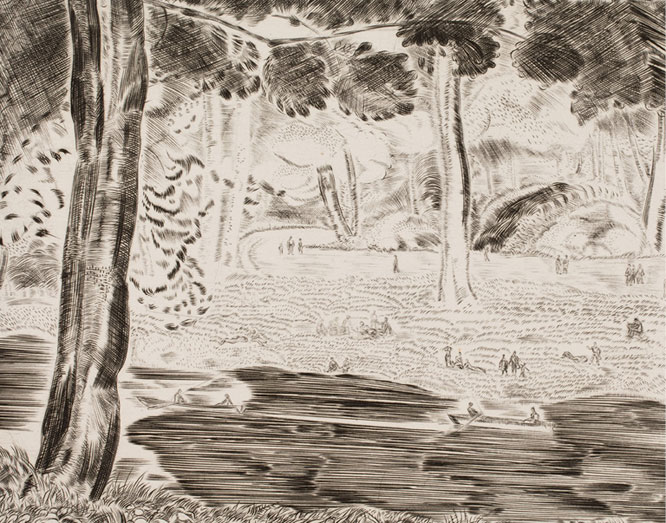 Дмитрий Митрохин. Отдых на траве, Ленинград, 1937 г. Бумага, резцовая гравюра