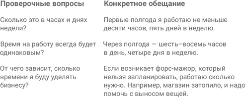 К тому же обстоятельства меняются и вместе с ними представление о том, что сейчас важно. Сначала оба партнера работали по двенадцать часов, потом один решил, что не за этим ушел из найма, и стал работать по три часа в день. Такое бывает.