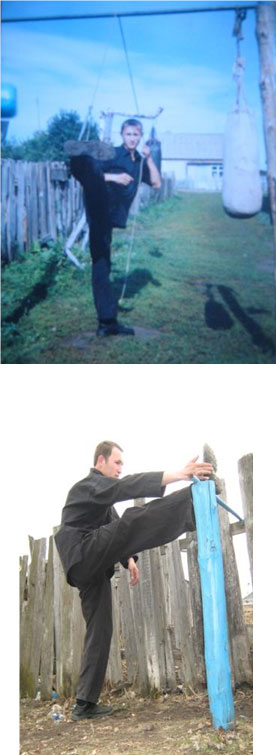 В скором времени ко мне стали приходить ребята. Тренировались мы вечерами. Мой спортзал был за двором, и поэтому было все видно, и люди, проходившие мимо, замечали нас. Подходили, кому было интересно. Я демонстрировал свои удары руками и ногами на скорость и силу, или же на манекенах. Объяснял, как правильно их можно применять, и для чего они нужны.